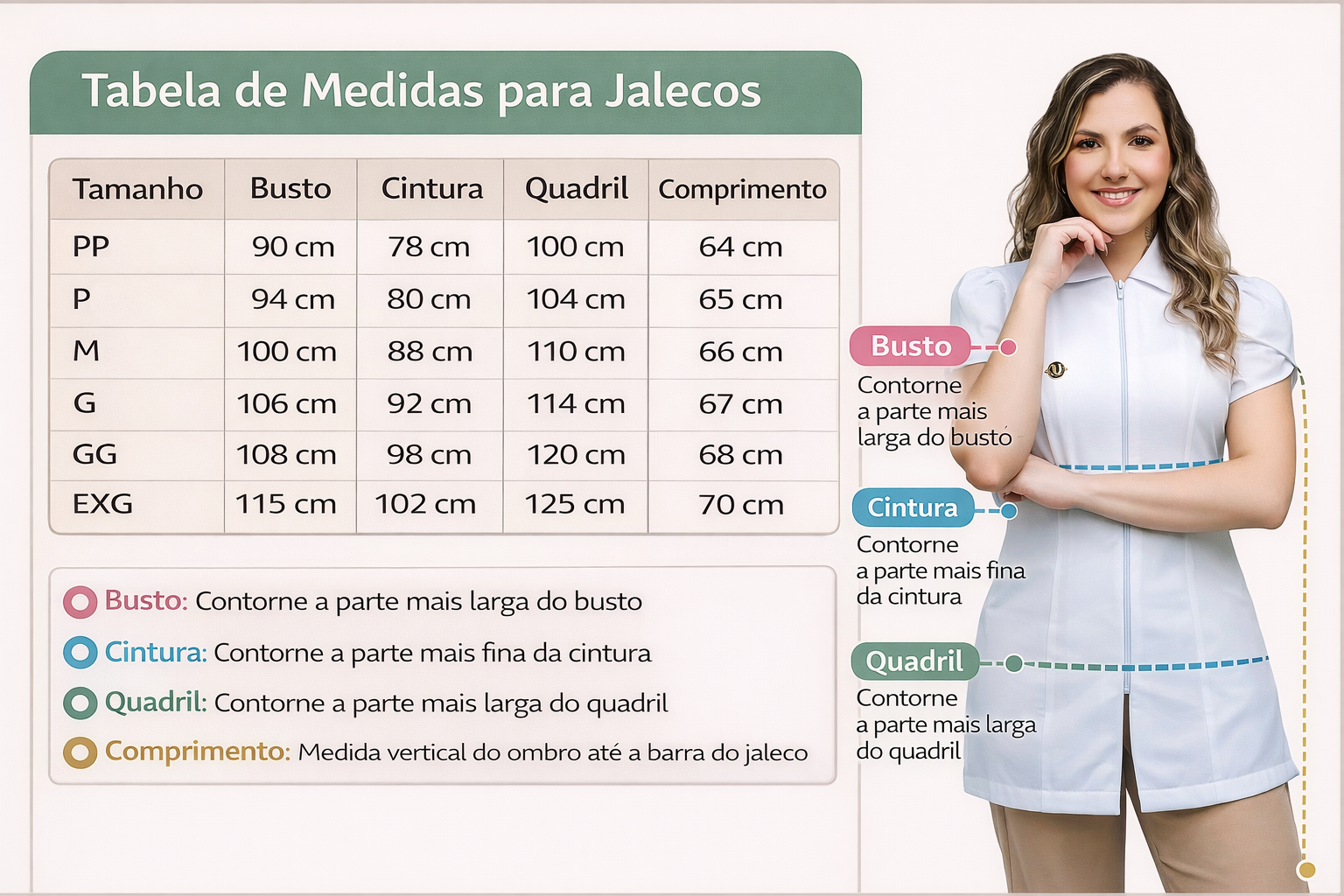 Se você procura um jaleco moderno, fresco e com caimento impecável, esse modelo é perfeito para sua rotina profissional.