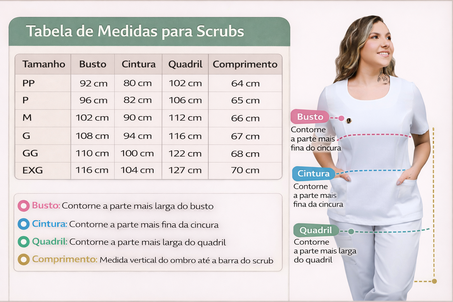 Desenvolvido para profissionais da saúde que buscam conforto o dia todo sem abrir mão de estilo, o Scrub Feminino Premium é confeccionado em tecido TwoWay (95% poliéster + 5% elastano), proporcionando toque macio, elasticidade, leveza e excelente caimento.